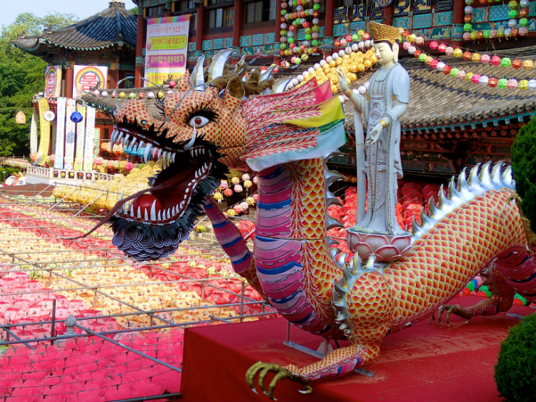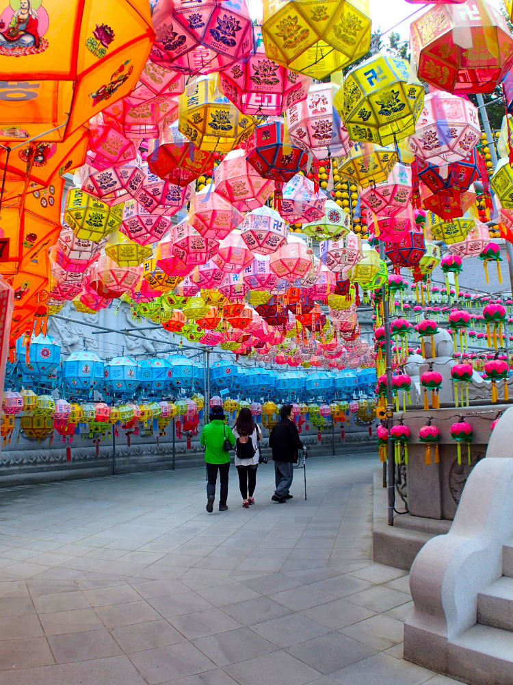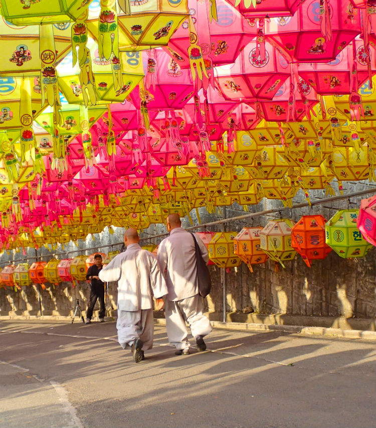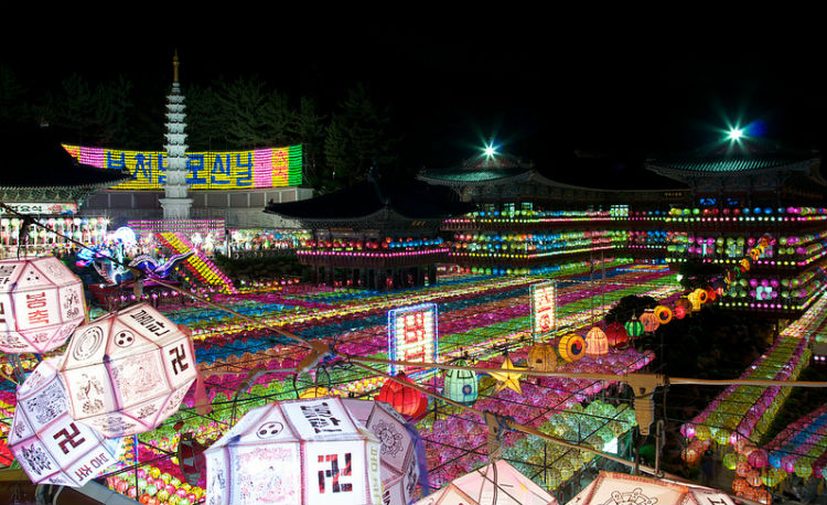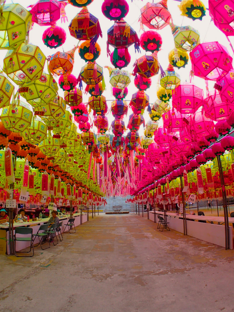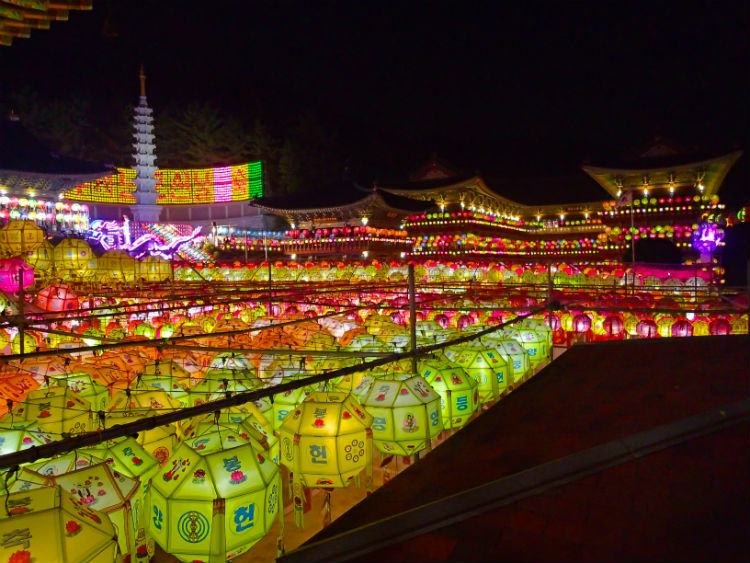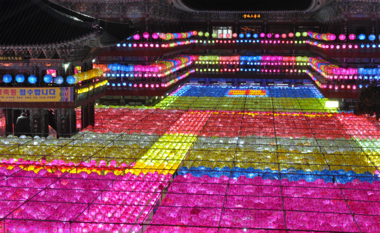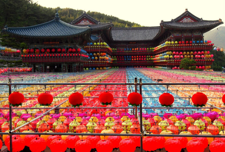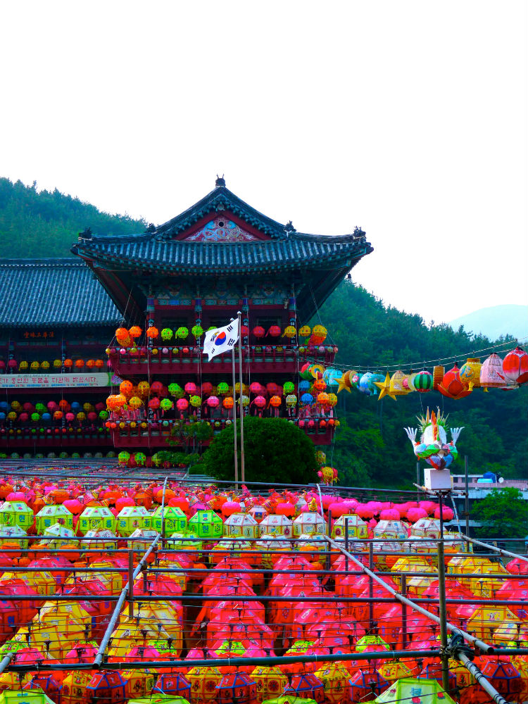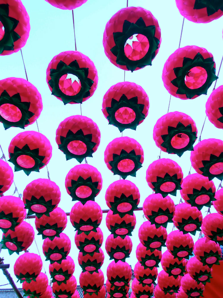 Để chào mừng ngày Đức Thích Ca đản sanh, hàng ngàn chiếc đèn lồng màu sắc rực rỡ được xâu thành chuỗi, đan lên nhau giăng trên khắp chùa ờ thành phố Busan. Những chiếc đèn lồng này tượng trưng cho lễ kỷ niệm ngày Đức Phật ra đời với nhiều hình dạng của hoa sen và là một trong những họa tiết được công nhận là của văn hóa Phật giáo Hàn Quốc.