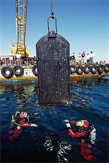 4. Nhiều bức tượng lớn và mảnh vỡ của một bia đá khổng lồ được trục vớt lên xà lan. Các bức tượng của Pharaoh, hoàng hậu và thần Hapi có niên đại thế kỷ 4 TCN còn bia đá vào khoảng thế kỷ 2 TCN.