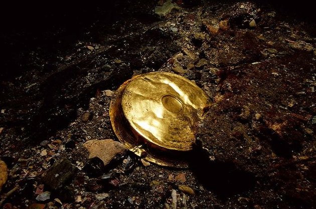 12. Một đồ dùng bằng vàng có tên gọi là Phiale được phát hiện tại di chỉ Heracleion. Phiale là những chiếc đĩa nông thường được dùng để chứa đồ uống hay lễ vật trong thời kỳ Hy Lạp cổ đại.
