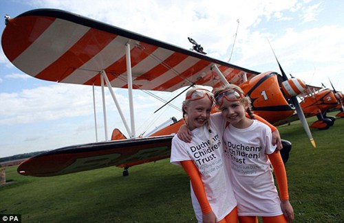 Hai cô bé đã thực hiện chuyến bay mạo hiểm này để truyền nghị lực cho cô bạn Eli Crossley, 6 tuổi bị bệnh teo cơ.