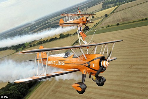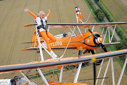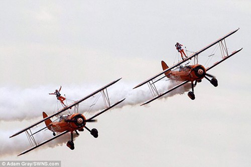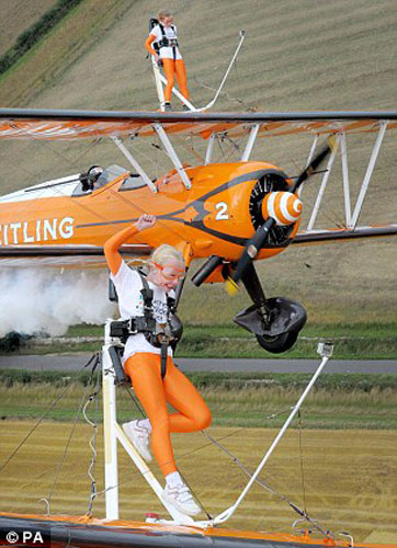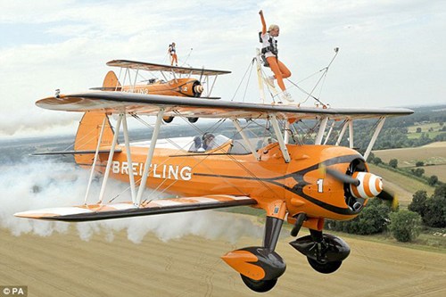 Rose Powell và Flame Brewer đã biểu diễn trên cánh chiếc máy bay cổ Boeing Stearman của ông nội.