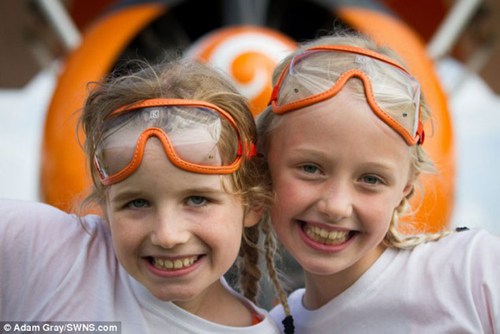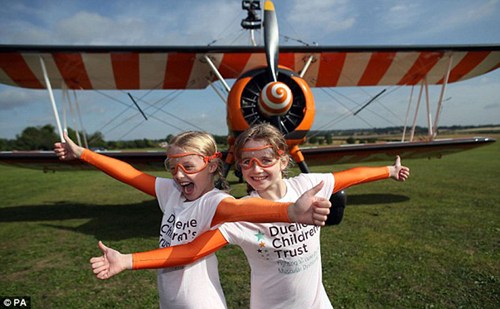 Flame và Rose đã trở thành những cô bé biểu diễn trên cánh máy bay nhỏ tuổi nhất ở sân bay RFC Rendcomb.
