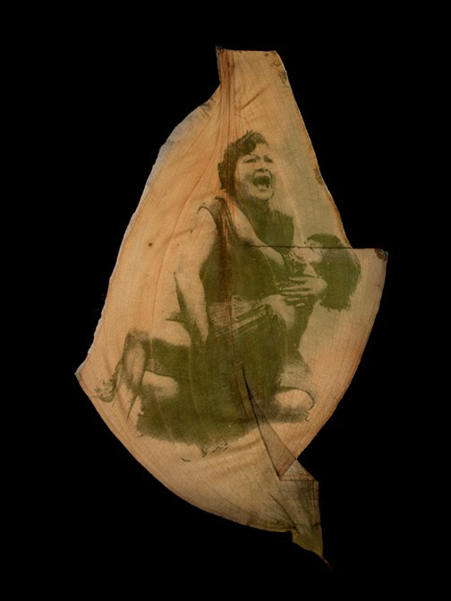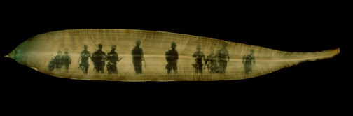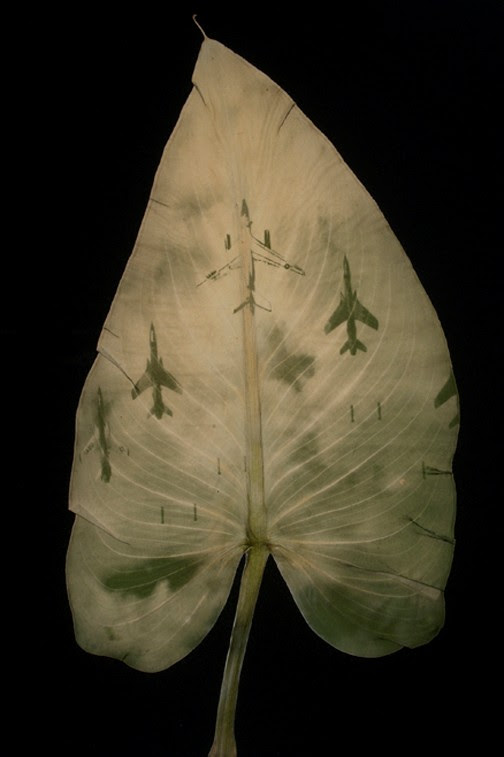 Nỗi ám ảnh về cái chết, tình người trong chiến tranh là đề tài chủ đạo của một bộ ảnh trên lá cây của một nhiếp ảnh gia Mỹ.