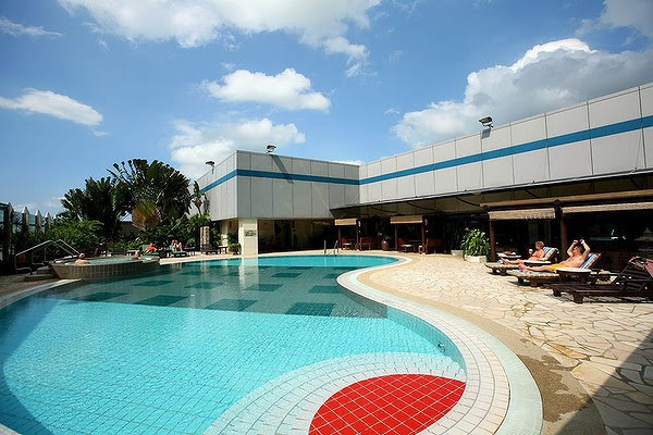 Trong sân bay có cả hồ bơi trên sân thượng.