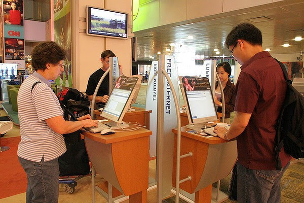 Hành khách sử dụng Internet miễn phí tại các kiot đặt ở nhiều nơi trong phi trường.
