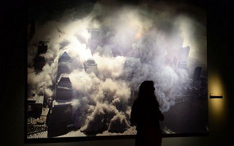 Bức ảnh ghi lại cảnh một trong 2 tòa tháp của WTC sập xuống sau vụ tấn công.