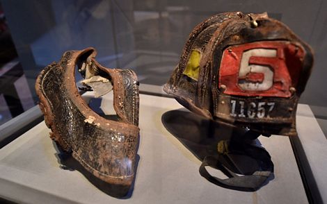 Một chiếc mũ từng được nhân viên sở cứu hỏa New York sử dụng khi tham gia cứu hộ sau vụ tấn công.