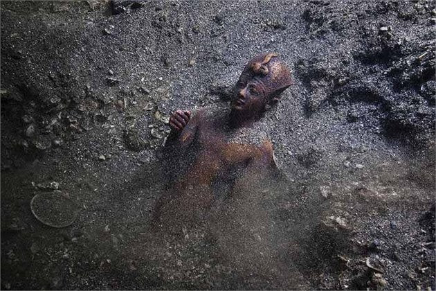 19. Sau hàng ngàn năm ngủ yên dưới đáy biển tối tăm, phần đầu đã bị rời ra của một bức tượng Pharaoh khổng lồ lại được đón ánh nắng mặt trời.