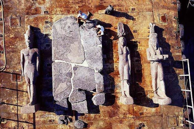 15. Các nhà khảo cổ đang tiến hành trục vớt bức tượng của thần Hapi cao 5.4m và cũng được làm bằng đá granit đỏ.