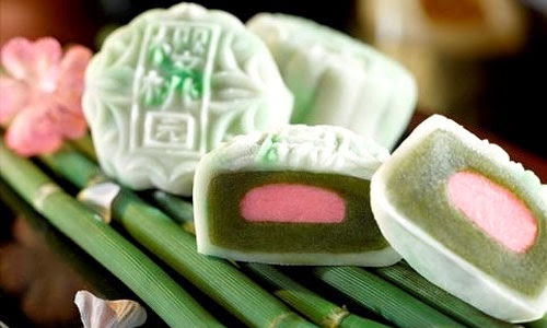 Lấy cảm hứng từ mùa xuân loại bánh này có màu xanh mịn màng, phần nhân được sáng tạo với đậu nành, lòng trắng trứng và hương trà xanh. Màu sắc của chiếc bánh gợi cho ta không khí đầy sức sống, màu hồng dịu dàng của hoa đào, màu xanh mướt của lộc non tươi mới. Ngoài hình thức vô cùng hấp dẫn nhân bánh được làm từ đậu nành cũng là một nét độc đáo, quyến rũ mới.