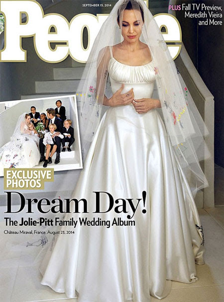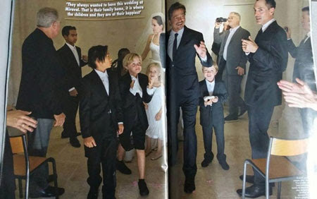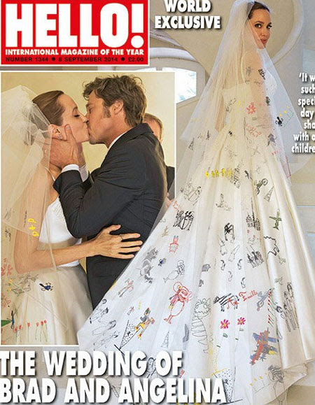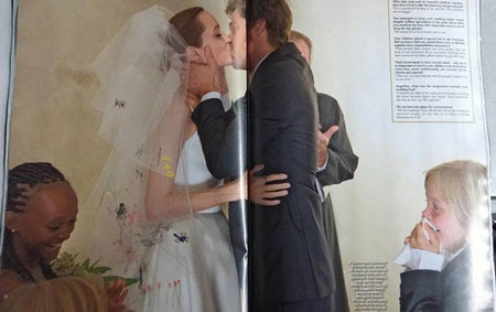 Tạp chí Hello và People là hai tạp chí duy nhất có được hình ảnh "độc" về hôn lễ của cặp tình nhân Brad Pitt và Angelina Jolie. Toàn bộ số tiền thu được từ việc bán ảnh cưới sẽ được Brad và Angelina Jolie đóng góp cho các tổ chức từ thiện.