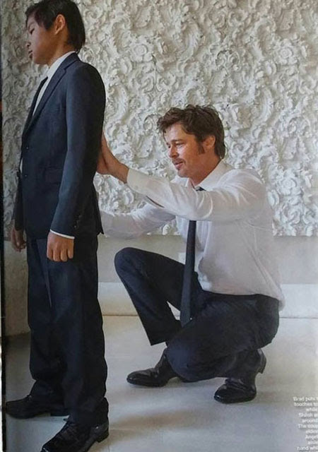 Brad Pitt tự tay chỉnh sửa trang phục cho cậu con nuôi Pax Thiên.