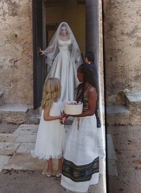 Các con Angelina Jolie "tháp tùng" mẹ tiến vào nhà thờ chuẩn bị làm lễ cưới