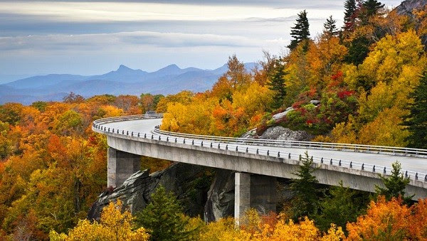 Với chiều dài gần 755km, Blue Ridge Parkway được mệnh danh là “con đường xanh” bởi những tán cây xanh mượt bao phủ khắp con đường. Nhưng thực sự Blue Ridge Parkway đẹp nhất lại chính là vào mùa lá đổi màu.