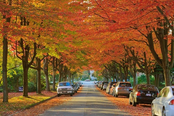 Từ giữa tháng 9 đến giữa tháng 10, những con phố ở Vancouver lại ngập tràn trong những tán lá phong mùa thu tuyệt đẹp. Điều đặc biệt là những con phố ở đây không mang một màu sắc giống nhau mà đa dạng với các sắc vàng, đỏ, nâu…