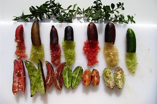 Quả chanh ngón tay lạ mắt khá mọng nước, thường có màu xanh, tím, vàng, hồng, đỏ và đen.