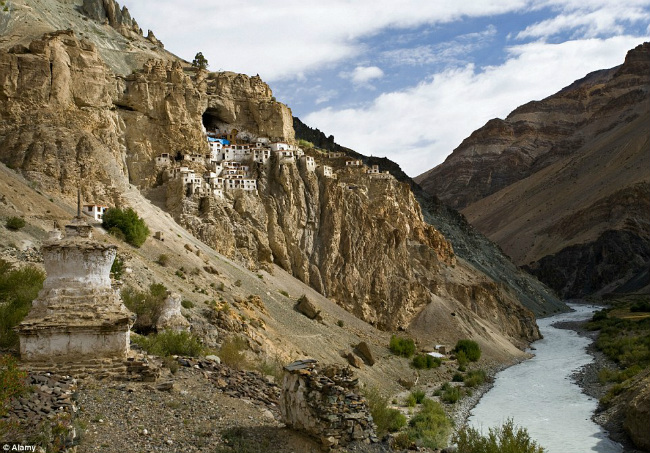 Làng tổ ong: Đó là ngôi làng Phuktal hay quần thể tu viện Phugtal ở Ấn Độ nằm ẩn mình trên vách đá núi treo leo, chắn trước cửa hang phía Đông- Nam vùng Zanskar thuộc Ladakh và được coi là địa điểm hẻo lánh nhất phía Bắc Ấn. Nhìn từ xa, quần thể làng tu viện này trông giống như một chiếc tổ ong khổng lồ treo lơ lửng chiếc miệng hang. Được biết, nơi đây được thành lập vào đầu thế kỷ 12 và trở nên biệt lập cho đến khi nhà ngôn ngôn ngữ họ và phương Đông học người Hungary là Alexander Cosmo de Koros lần đầu ghé thăm vào thập niên những năm 1800 và lưu lại đây nghiên cứu ngôn ngữ Tạng trong một thời gian với kết quả là cuốn từ điển Tạng - Anh kinh điển.