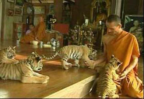 Từ 10 năm nay, ngôi chùa Pa Luang Ta Bua, hay còn gọi chùa Cọp (tỉnh Kanasampanno, miền Tây Thái Lan) thu hút rất đông du khách từ khắp nơi trên thế giới bởi 34 chú cọp hiền lành trong khuôn viên chùa.