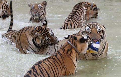 Đàn cọp được thả tự do chơi đùa vào mỗi chiều