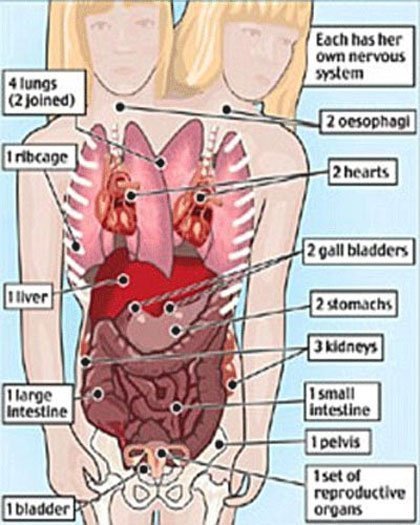 Abigail Loraine Hensel và Brittany Lee Hensel sinh ngày 7/3/1990 tại tiểu bang Minnesota (Mỹ). Đầu của Abigail nằm bên phải còn Brittany nằm ở bên trái. Hai chị em có 2 xương sống và nối với nhau ở khung chậu, họ có 2 gan, 2 trái tim, 3 quả thận, 2 dạ dày, 4 phổi, và 2 cánh tay (một cánh tay phát triển không hoàn toàn ở giữa cơ thể đã bị cắt bỏ khi họ còn nhỏ). Khi sinh ra, các bác sĩ chẩn đoán họ không thể sống nổi qua đêm nhưng hai cô gái đáng yêu này đã sống khỏe mạnh và vui tươi suốt 22 năm qua. Một chương trình truyền hình thực tế về Abigail và Brittany Hensel học tại đại học Bethel, cuộc sống và công việc hàng ngày, những chuyến du lịch châu Âu cùng bạn bè của họ, sẽ được phát sóng vào những ngày gần đây.