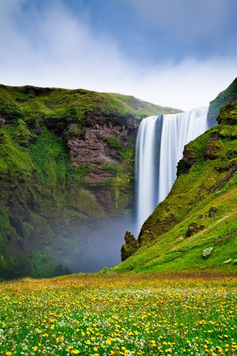 Màu trắng của thác nước tại Skogafoss, Iceland hòa quyện tuyệt đối