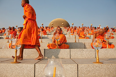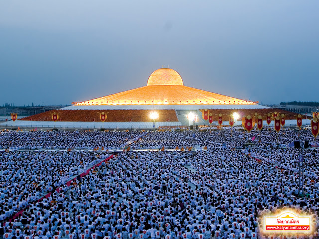 Một giờ sau, mọi người tiếp tục thiền. Hàng ngàn tín đồ mặc áo trắng ngồi xếp bằng dưới đất. Các nhà sư mặc áo vàng ngồi trước bục trên một sân khấu giống như ở nhà hát. Các sư giảng kinh, tín đồ ngồi phía dưới lắng nghe, có lúc đọc theo một vài câu. Kết thúc buổi giảng, tất cả mọi người cùng hát một ca khúc kêu gọi hòa bình trên toàn thế giới. (Đây là ca khúc của giáo phái Dhamma Kala, tiếc rằng tôi không nhớ tên bài hát).