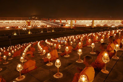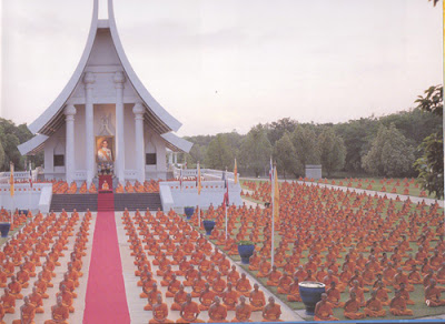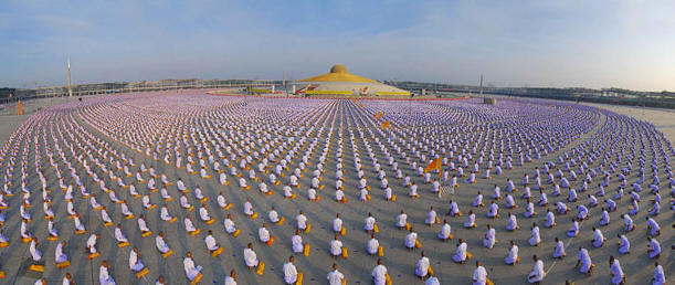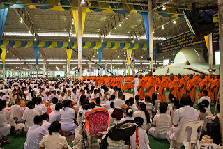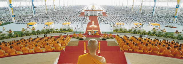 Phật giáo Thái Lan thuộc hệ Nam Tông (còn gọi là Tiểu Thừa) cũng như Phật giáo Campuchia, Lào, Myanmar, Sri Lanka, nên ăn mặn. Còn Phật giáo hệ Bắc Tông (Đại Thừa) như Việt Nam, Trung Quốc, Nhật Bản, Triều Tiên thì ăn chay. Chỉ riêng một góc thiền đường này thôi mà tôi thấy hàng mấy ngàn tín đồ, có thể nói đông như kiến, tất cả đều mặc đồ trắng toát, họ ăn uống, nói chuyện rất khẽ, tuyệt đối không có tiếng ồn.