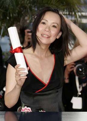 (Phải) Đạo diễn người Nhật Naomi Kawase với Giải thưởng lớn của Ban Giám