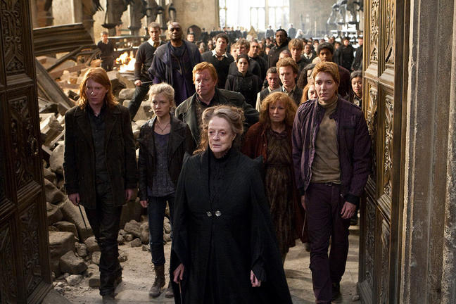Voldermort ra lệnh tấn công Hogwartz. Mưa đạn pháo bay xuống, phủ ngập, tan nát ngôi trường. Bà giám hiệu, thày Snape huy động moị người tìm nơi ẩn náu. Khi mãng xà tinh bị chem, ma lực Voldermort cũng tàn lụi dần rồi tan biến.