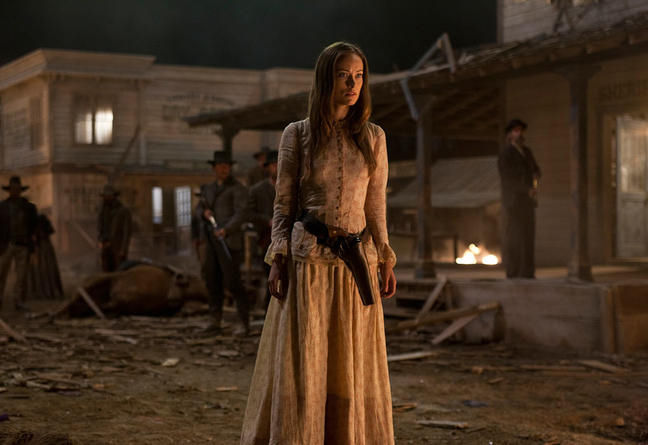Nhốt Percy xong, ông Taggart lột tờ lệnh tầm nã gọi mấy nhân viên bước sang quán. Jake đang uống rượu trên quầy. Ella Swanson (Olivia Wilde), thiếu phụ trầm lặng rề qua làm quen, chưa kịp hỏi han gì thì ông Taggart bước vào tuyên bố: