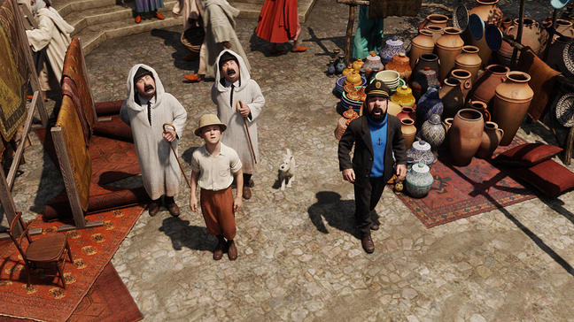 Trên đường về Tin Tin đã bi Sakharine (tiếng nói Daniel Craig) đi theo vừa dụ, vừa dọa, đòi mua lại cái tầu. Hắn theo về đến tận nhà Tin Tin và rình ngoài ngõ. Khi Tin Tin đi ra ngoài Sakharine lẻn vào. Hắn phát hiện cái tầu đã bị gẫy bể. Hắn lục tanh banh căn nhà để tìm vật gì đó rồi lấy luôn cái tầu mang đi. Lúc về Tin Tin bất mãn vì căn nhà của anh bị phá tang hoang và cái tầu thì đã bị lấy mất.