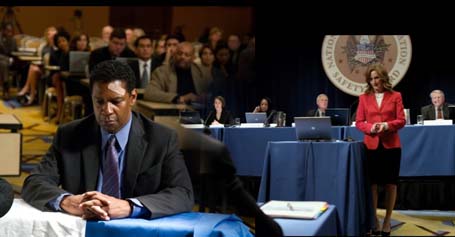 Hugh đã chuẩn bị tất cả hồ sơ thật hoàn hảo. Chủ tịch ủy ban, chiếu những khúc phim cảnh lái máy bay ngược là một kỹ thuật siêu đẳng, đã cưú được hàng trăm hành khách và đương sự thoát chết, moị người vỗ tay hoan nghênh. Qua mục hai vỏ chai rượu Volka trong thùng rác. Hugh đã chuẩn bị lèo lái cuộc điều trần trước khi họ bắt Whip Whitaker đưa tay thề trên thánh kinh: