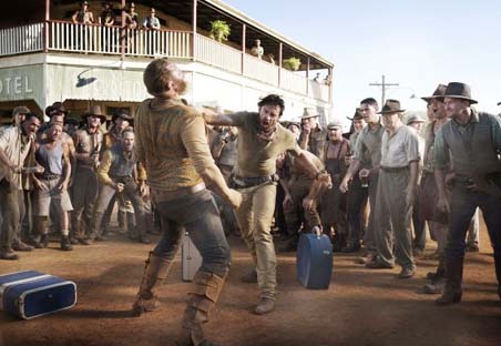 Đón tiếp bà tại bến tầu là Drover (Hugh Jackman), một thanh niên nghề chính là cowboy, nghề phụ là tài xế chiếc xe thổ mộ của côngty Ashley. Sarah mang theo hàng chục chiếc vali chưá quần áo giầy vớ, nón nữ trang và đủ thứ dụng cụ đàn bà lỉnh kỉnh. Drover chất hết đống y trang lên chiếc xe chất đầy đồ ăn, phân bón, dụng cụ nông trại. Dọc đường quần áo của bà Sarah bay vướng vãi theo gió chiều. Trên mui xe còn chở mấy anh thổ dân người Úc đen đủi, đóng khố bằng lá chuối mo cau, không che hết “khúc nam nhi trái” của họ.