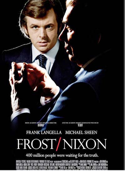 David Frost (Michael Sheen), người đóng vai thủ tướng Tony Blair trong phim “The Queen” đã được đạo diễn Ron Howard chọn đóng vai người điều khiển chương trình TV Anh quốc làm cuộc phỏng vấn cưụ Tổng thống Richard Nixon năm 1977. Phim “Frost/Nixon” lấy một số tài liệu thực pha trộn với kịch bản thêu dệt của Peter Morgan.