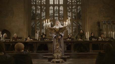 Giám hiệu Dumbledore chào mừng niên học mới và giới thiệu sự trở lại của thày Horace Slughorn. Ông hưá hẹn niên học mới sẽ có nhiều biến chuyển, mọi người phải đề cao cảnh giác và nghiêm ngặt trước sự đe dọa xâm nhập của nhiều phe tả .