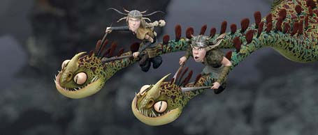 “Không răng mô” bay bị té lên té xuống khổ sở lắm. Hiccup quan sát thấy một bên cánh phía đuôi của Toothless bị rớt mất làm cho nó không điều khiển được phương hướng. Hiccup về lò rèn làm một cái cánh tương đương bằng da với khung gắn vào đuôi. Từ đó Toothless bắt đầu bay lại bình thường. Hiccup và Astrid leo lên lưng Toothless bay lượn trên không trung, ngoạn cảnh đó đây thật thần tiên.