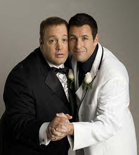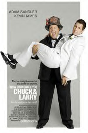 Cuốn phim dẫn đầu số thu tuần này lại mang đề tài Gay ra trêu chọc. “I Now pronounce you Chuck and Larry” lấy bối cảnh một trạm cưú hoả, đám lính chữa lửa toàn là đàn ông. Chuck (Adam Sandler) là chàng thanh niên độc thân hào hoa nhất, ở bất cứ nơi nào Chuck cũng được các em gái xexy bu quanh làm cho các bạn anh thèm nhỏ dãi. Larry Valentine (Kevin James) ngược lại rất đứng đắn dù rằng vợ anh đã chết để lại 2 đứa con còn nhỏ.