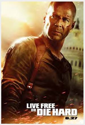 Tài tử Bruce Willis đã trở lại với đề tài hành động mạnh sau 12 năm từ cuốn phim cuối cùng "Die Hard with a Vangeance". Lần này trong phim mới "Live Free or Die Hard", Bruce đóng vai một thám tử cành sát một mình chống lại tập đoàn bad Guys dùng siêu kỹ thuật phá hoại toàn diện thế giới tự do.