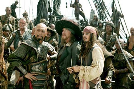 "Pirates of the Caribean: at World's End" là cuốn phim thứ ba về Hải tặc vùng biển Ca ri biên. Hai phim truớc đã hốt bạc bạo, cuốn thứ ba này hưá hẹn còn thắng lớn hơn. Lần này không chỉ quanh quẩn trong vùng biển Đông Mỹ mà còn lan sang tận Singapore và lên tới miền Bắc cực. Cũng với những nhân vật trong giới giang hồ nửa đùa nửa thật, nửa người nửa ma làm say mê hàng triệu triệu khán giả khắp thê giới đã trút hầu bao đi xem phim.