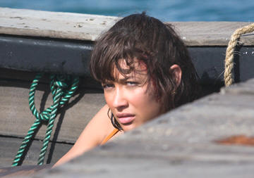 Cô gái phát hiện phiá sau đuôi có chiếc xe môtô chạy theo mấy đọan đường. Biết không phải là người của mình, cô phóng xe băng ngang đầu chiếc xe hàng. Xe hàng thắng gấp, mấy cái quan tài đổ đầy xa đường cản mũi xe mô tô. James nhẩy xuống lề đường chờ xe môtô tới hất cẳng cho chàng kia ké kềnh ra đường và chàng mượn đỡ chiếc xe môtô của anh làm phương tiện riêng. Cô gái là Camille (Olga Kurylenko), James lái môtô theo cô vào khu bến tầu ở bãi bể Portofino.
