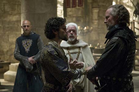 Hoàng cung hoảng hốt trước tin Vua Richard bị chết. Robin mang vương miện vào cung trao cho bà Thái hậu. Hoàng tử John (Oscar Isaac) có phẩm trật cao nhất, ông này còn trẻ, ham mê tưủ sắc chẳng màng chi tới chuyện quốc gia đại sự. Khi nghe tin vua Anh chết, John nhất định đòi Thái hậu cho lên ngôi, bà miễn cưỡng trao vương miện cho chàng Hoàng tử lóc chóc. Thái hậu cũng gởi gấm việc triều chính cho quan đại thần William Marshal (William Hurt). Nhưng, khi vừa lên ngôi Hoàng đế John liền tuyên bố giải nhiệm Marshal trao quyền tổng trấn Nottingham cho viên tướng playboy Godfrey (Mark Strong).
