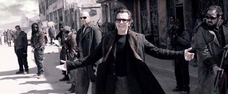 Trạm nghỉ kế đến là một tỉnh nhỏ hoang tàn. Chủ nhân cái quán duy nhất cũng là người cầm đầu thôn này, Carnegie (Gary Oldman) tự phong là thủ lãnh dùng nguồn nước uống để kết nạp tay chân và chỉ huy dân chúng. Carnegie cho bộ hạ đi khắp nơi để tìm một cuốn sách hắn nói là quí. Eli vào quán goị nước uống, mấy tên lâu la nhào vô muốn lục soát cái túi. Một tên sừng sỏ nhất nắm cái túi giựt. Nhanh như cắt, hắn bị Eli tóm tóc, vặn cổ đập đầu xuống mặt bàn. Eli buông tay, tên kia lăn đùng ra sàn nhà ôm đầu rên rỉ. “No body touch my bag, my book”.