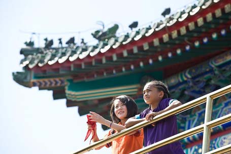Dre xuống sân chơi làm quen với bạn mới, đánh bóng rổ với mấy đưá con trai nhưng Dre chú ý cô con gái ngồi trên ghế đá với cái đàn violin. Dre lân la lại làm quen, may quá cô gái Tầu nói được tiếng Mỹ. Meiying (Han Wenwen) cũng trạc tuổi với Dre nên chỉ vai câu trao đổi hai cô cậu đã thân mật với nhau. Như vậy thời gian ở Bắc Kinh hy vọng sẽ bớt tẻ nhạt, Thế nhưng không ngờ đó lại là đầu mối đưa tới những rắc rối sau này.