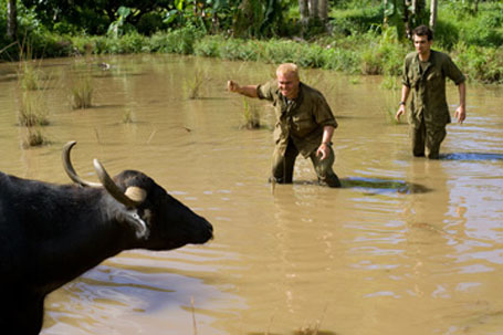 Rất may cho Tugg, trước kia anh có đóng trong một cuốn phim không giống ai, “Simple Jack”, không rạp nào chịu chiếu chỉ đành phải ra Video. Cuốn phim bán ở thị trường Á Châu. Doanh trại ma tuý có cuốn phim “Simple Jack” được phát đi phát lại mỗi ngày cho lâu la xem giải trí. Mọi người đã quen mặt Jack trong cuốn phim, chàng thanh niên mắc chứng chậm phát triển, cà khật, làm bầu bạn với những thú vật gia súc. Trong rừng chẳng có gì để coi, đám lính canh chỉ biết Jack và say mê lối diễn xuất khật khùng của anh. Nay, chính Jack đang là tù binh của họ. Tên nhóc con đầu sỏ bắt Tugg phải hoá trang thành Jack diễn tuồng “Simple Jack” giúp vui cho lính canh. Suốt mấy ngày, Tugg phải trình diễn trước cho lớp khán giả rừng rú cảnh điên khùng mà anh tự biên tự diễn. Khán giả khoái chí có em bé say mê nhận Tugg là cha nuôi.