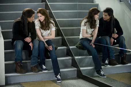Bella cảm động trước sự hy sinh của Jacop, cô bé gần ngả vào vòng tay của Jacop thì Edward xuất hiện. Cô nàng trở mặt ngay tức khắc, chạy đến với Edward. Jacop nổi cơn ghen với Edward. Bella phải giảng hoà. Jacop nhắc lại, chó sói và vampire còn có mối thù truyền kiếp nhưng đôi bên vẫn giữ những hiệp ước về ranh giới và quyền lợi.
