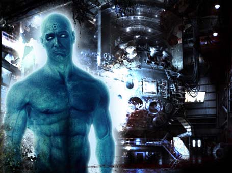 Nhân vật thứ hai là tiến sĩ vật lý Dr. Manhattan (Billy Crudup), ông tham gia một chương trình nguyên tử năng, một hôm trong phòng thí nghiệm Dr. Manhattan khám phá valve lò nguyên tử bị xì, ông vừa báo cho nhân viên trực máy bên ngòai thì họ lập tức khóa trái cửa phòng thí nghiệm lại. Chất phóng xạ tràn đầy phòng. Trong tích tắc cơ thể của Dr. Manhattan chỉ còn là bộ xương triệt tiêu khỏi mặt đất. Thế nhưng, một thời gian sau các tế bào da thịt trở lại với Manhattan trong tình trạng khác, khi thì hiện nguyên hình là một người khổng lồ cao bằng tòa nhà 10 tầng, nước da xanh lạt. Cả thân hình đàn ông của Billy Crudup được phơi bầy lủng lẳng trước mặt mọi người. Manhattan có sức mạnh kinh khủng và biến hóa nhanh chóng.
