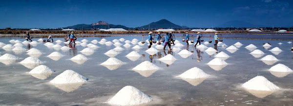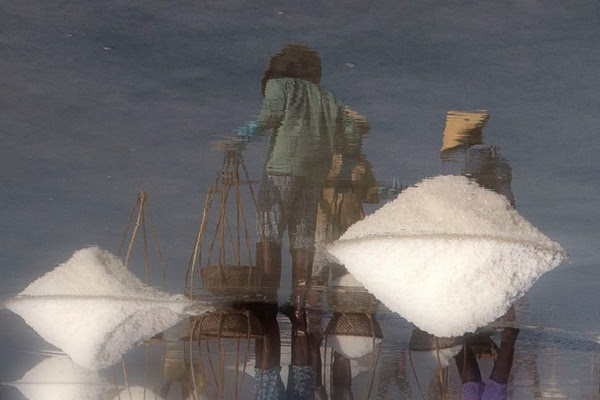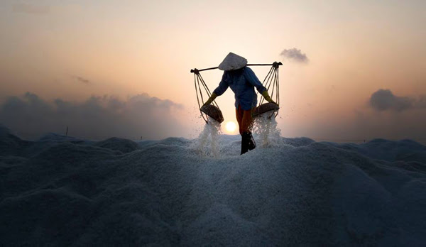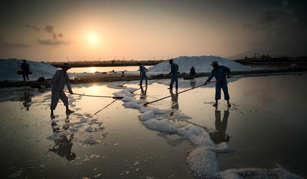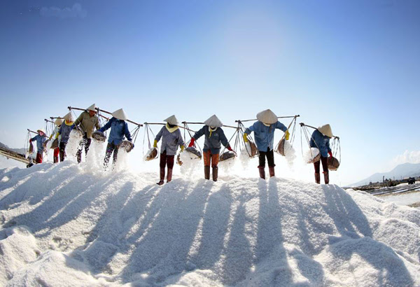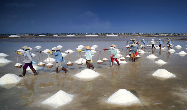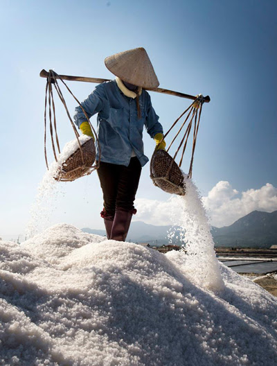 Các diêm dân cứ cần mẫn gánh từng gánh muối từ khi mặt trời chưa thức giấc..