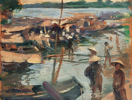 Bức “Chợ bên bến sông” - một bức tranh sơn dầu của họa sĩ người Pháp Victor