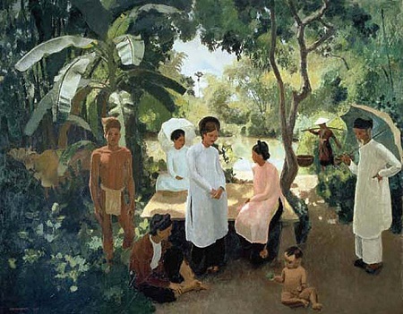 bức sơn dầu khổ lớn, đặt tên là “Gia đình bên bờ ao”.