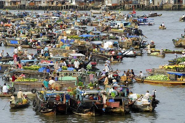 Ghe thuyền tấp nập buổi sớm tinh mơ